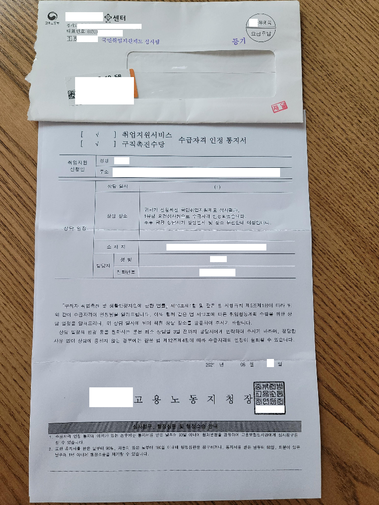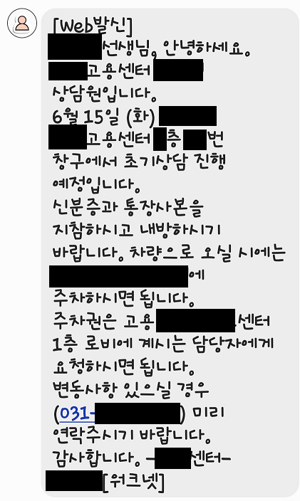 지난번 국민취업지원제도 신청을 하고 나서 (신청일 : 5월 27일) 고용센터에서 연락이 한 통 왔다.